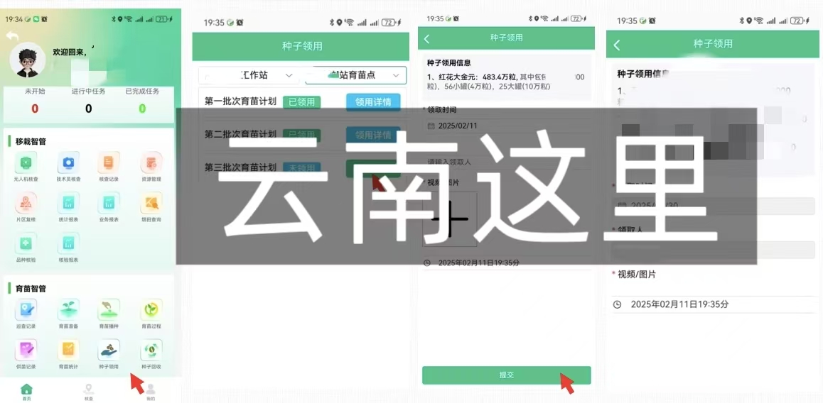 系統打造PC和APP共同接入智慧煙草農業系統,從精準發放籽種、精準供應管理、精準點蔸數苗、精準種植合同綁定、精準種植面積核查、精準考核六個方面入手,落實煙葉生產過程精準管控,確保高質量推進煙葉基礎管理水平提升行動。
