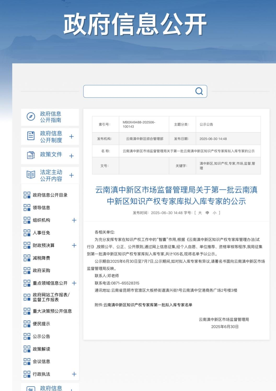 【云南滇中新區(qū)市場監(jiān)督管理局】關(guān)于第一批云南滇中新區(qū)知識產(chǎn)權(quán)專家?guī)?/span>擬入庫專家的公示